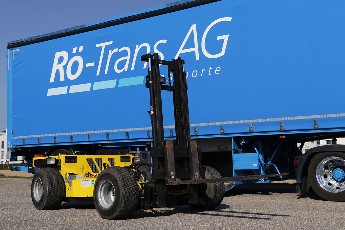 Dank des hydrostatischen Allradantriebs ist er zudem äusserst geländegängig, wodurch unsere qualifizierten Mitarbeiter die Ware präzis nach Kundenwunsch platzieren können.