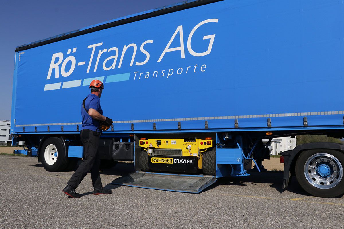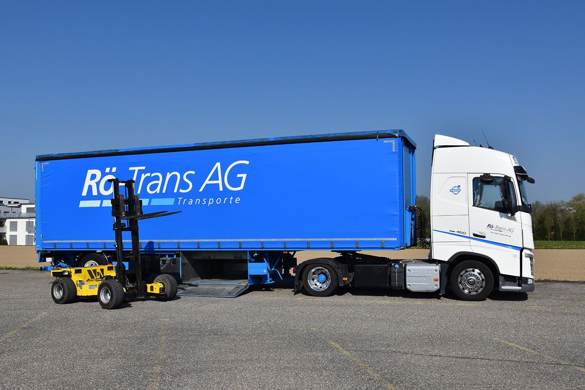 Dank des hydrostatischen Allradantriebs ist er zudem äusserst geländegängig, wodurch unsere qualifizierten Mitarbeiter die Ware präzis nach Kundenwunsch platzieren können.